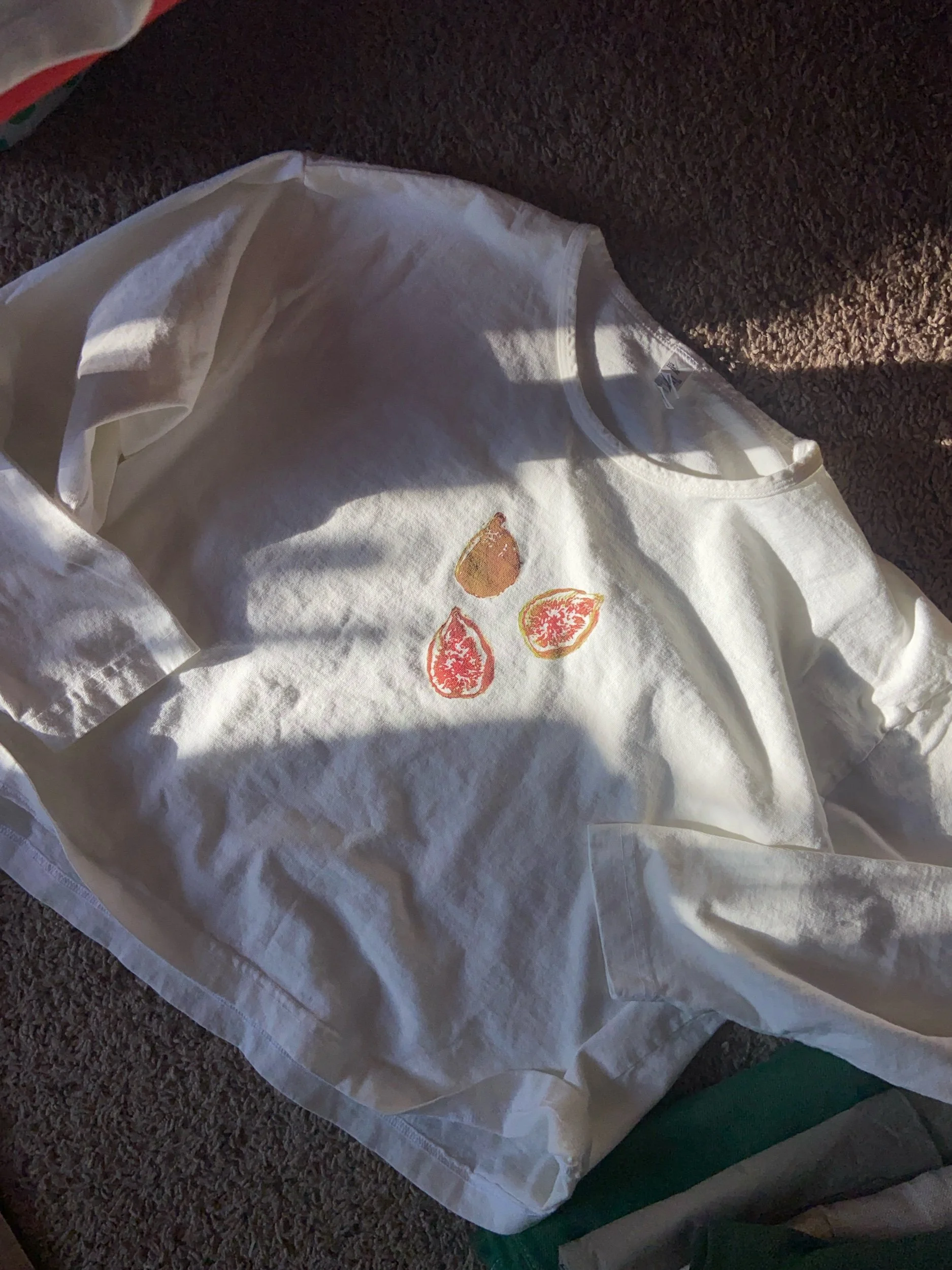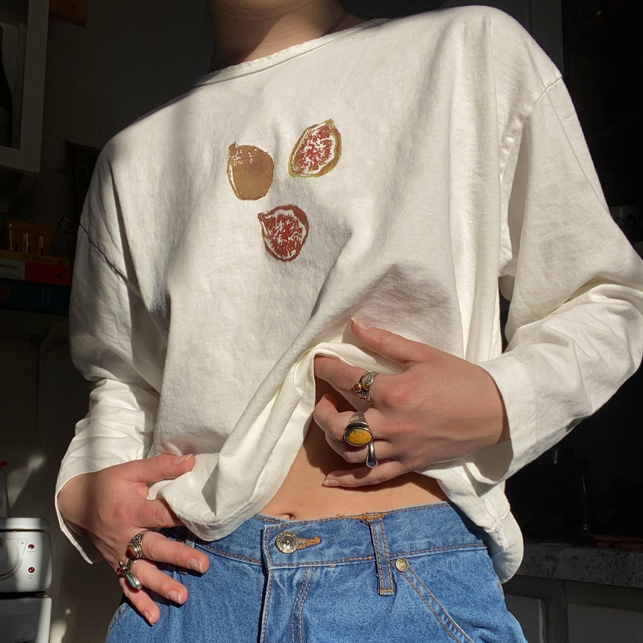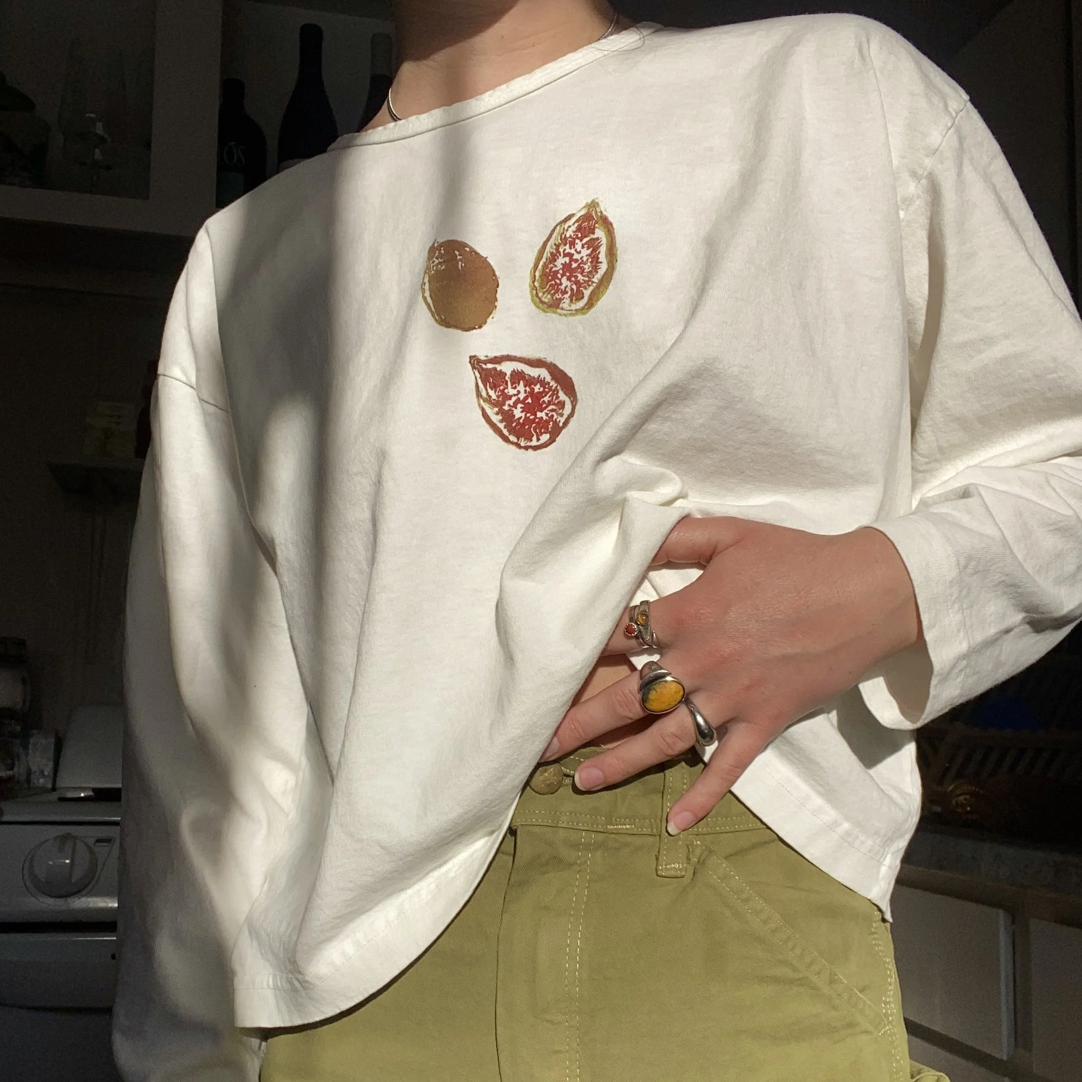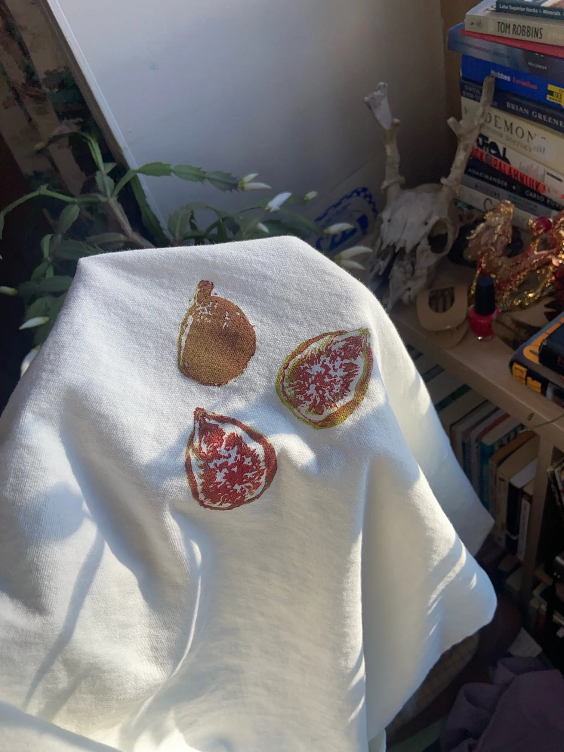 printed in two colors on a los angeles apparel 6.5 oz unisex crewneck tee in cream